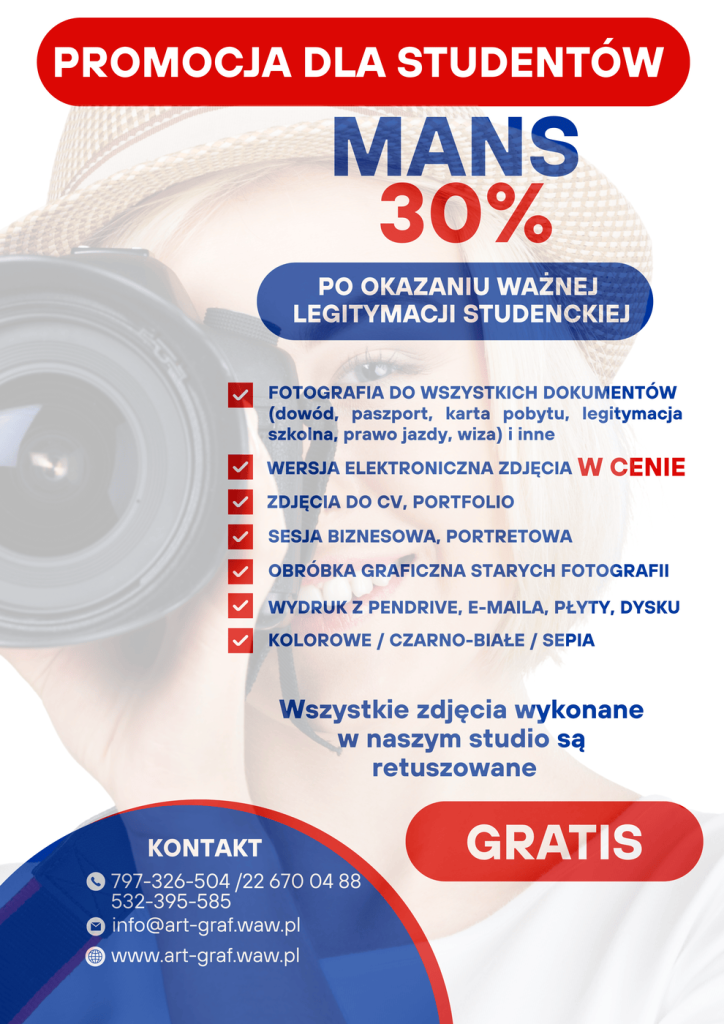 - usługi fotograficzne (zdjęcia do wszystkich dokumentów – dowód, paszport, karta pobytu, dyplom, legitymacja studencka, itp.)