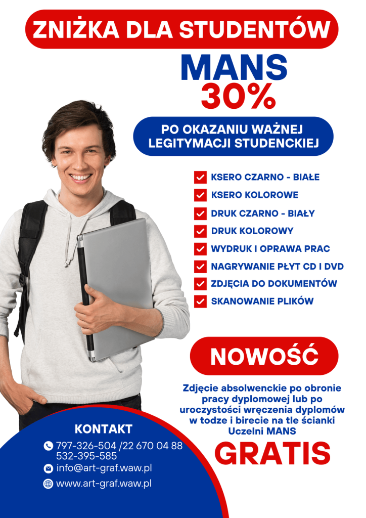 - druk prac dyplomowych (w czarno bieli i kolorze)